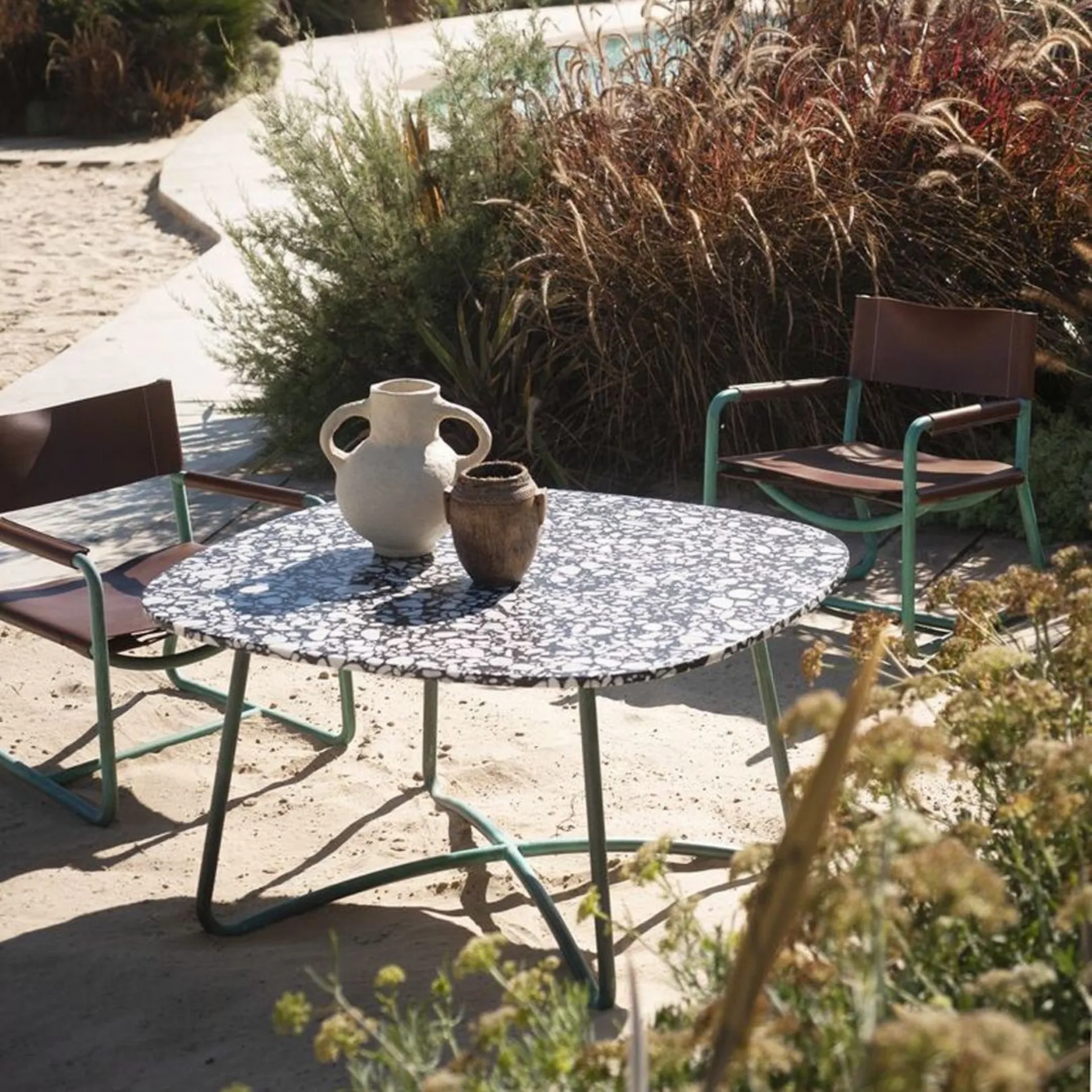 Designer: Paola Navone Der Tisch Rimini ist perfekt, um Ihrem Außenbereich einen Hauch von Eleganz und Funktionalität zu verleihen. Dank seines vielseitigen Designs kann er leicht mit verschiedenen Einrichtungsstilen kombiniert werden. Wenn Sie eine entspannte Atmosphäre schaffen möchten, erwägen Sie das Kombinieren mit Holz- oder Rattanstühlen. Für einen moderneren Look entscheiden Sie sich für Metall- oder Kunststoffstühle. Hier sind einige Tipps, um Ihren Tisch Rimini zu kombinieren: - Platzieren Sie ihn in einem sonnigen Bereich Ihres Gartens und umgeben Sie ihn mit bunten Pflanzen und Blumen. - Fügen Sie weiche Kissen auf den Stühlen hinzu, um ein wenig mehr Komfort zu schaffen. - Für kühle Abende erwägen Sie die Idee, einen Outdoor-Heizstrahler in der Nähe des Tisches zu platzieren. - Vollenden Sie Ihren Außenbereich mit einem Sonnenschirm, der zum Tisch passt, um an heißen Tagen einen schattigen Bereich zu schaffen. Denken Sie daran, der Tisch Rimini ist ein vielseitiges und robustes Möbelstück, ideal, um die Momente im Freien in vollen Zügen zu genießen.